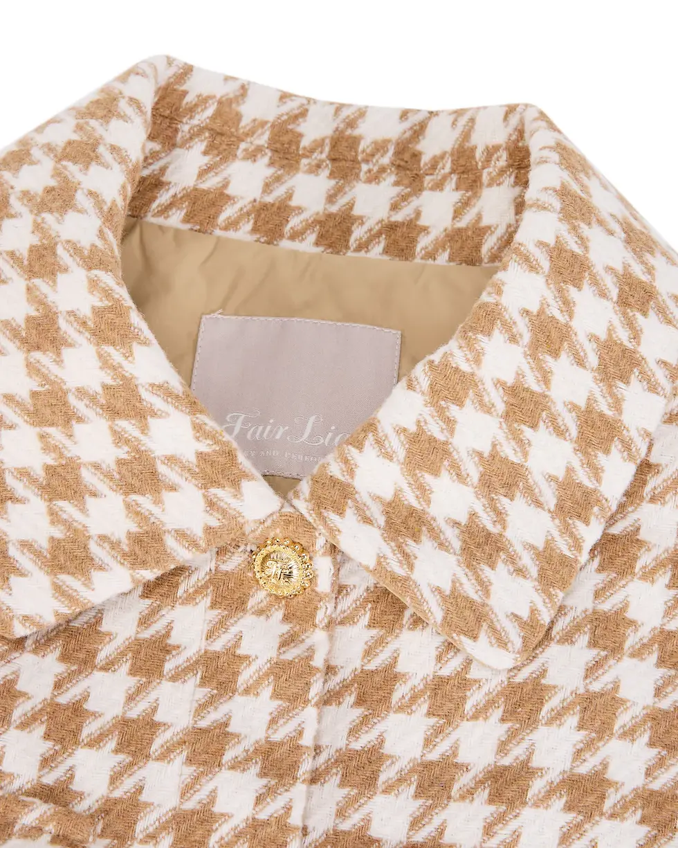 Houndstooth Checkered Quilted Vest - Beige
