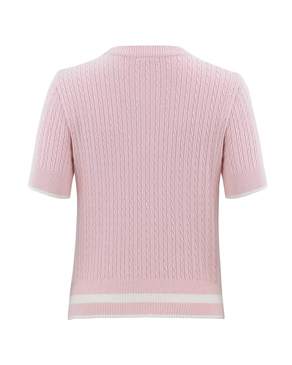Fair Liar Ribbon Cropped Short Sleeve Knit - Pink